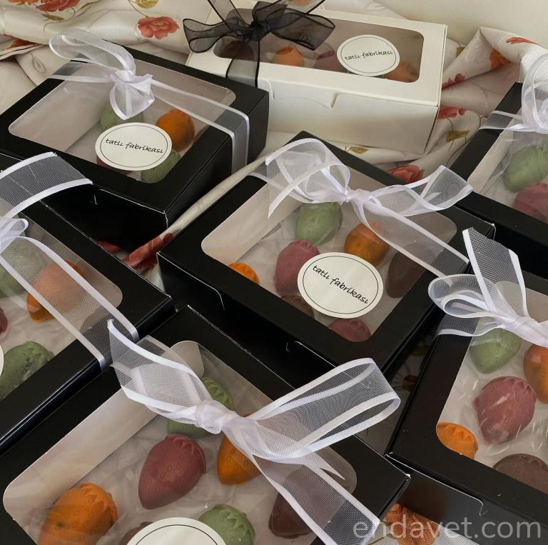 6. Özel Ambalaj ve Sunum Detayları: Nikah şekerinizin ve hediyeliklerinizin sunumu, bu küçük anıların değerini artıran önemli bir detaydır. Özel tasarlanmış kutular, zarif kurdeleler, kişisel etiketler ve çiçek detayları ile hediyelerinizi şık bir şekilde sunabilirsiniz. Düğün temasına uygun olarak hasır sepetler, vintage kutular veya dekoratif tepsiler içinde sergilenen hediyeler, davetlilerinizin gözlerini kamaştıracaktır.
