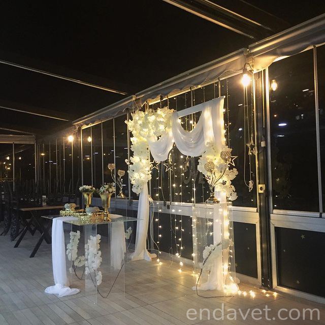 Geniş kapasiteli salonlardan, küçük ve samimi kutlamalar için ideal butik mekanlara kadar her konsepte uygun mekan seçenekleri ile sevdiklerinizle keyifli anlar yaşayın. Nişan pastası ve ikramlar, müzik ve eğlence hizmetleri, fotoğraf ve video çekimi gibi tüm detaylar için profesyonel destek alarak bu özel gününüzde yalnızca anın tadını çıkarın. Dış mekan tercihleriniz için, kır bahçeleri ve teras seçenekleri ile açık havada romantik bir söz veya nişan organizasyonu gerçekleştirebilirsiniz.